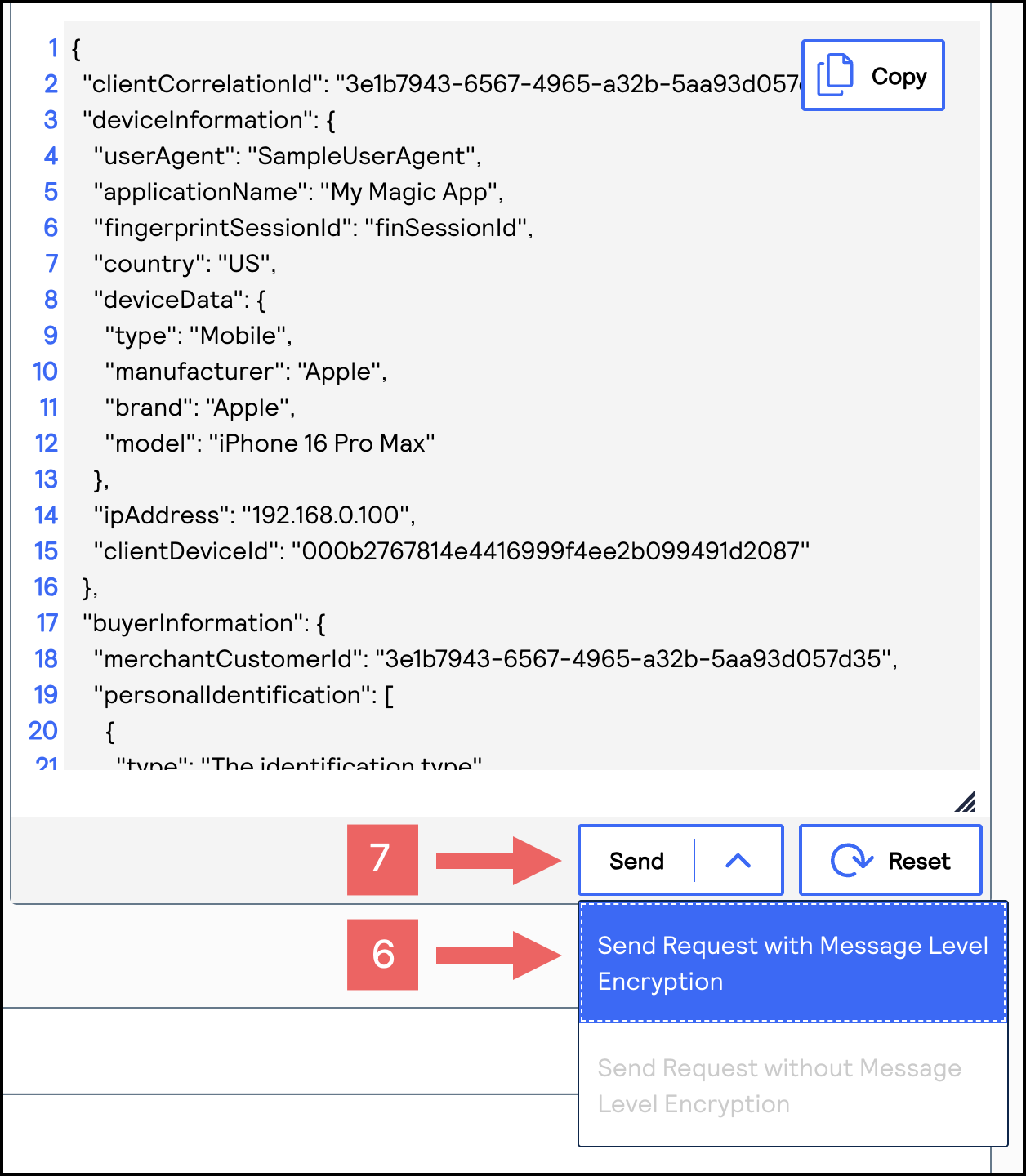 - From theSenddrop-down menu, chooseSend Request with Message Level Encryption.